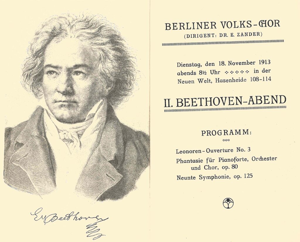 Der Berliner Volks-Chor trägt heute einen neuen Namen besteht aber noch immer – als Berliner Oratorienchor ist er wohl den meisten Sänger:innen und Chorfreund:innen ein Begriff. Den Chor selbst gibt es bereits seit 1904, also kann er fast auf eine Geschichte in der Länge derer des Chorverbandes zurückblicken. Ein erster Eindruck aus dem Jahr 1904 wurde dokumentiert und uns hier zum Nachlesen zur Verfügung gestellt. Wir bedanken uns für diese Einblicke.